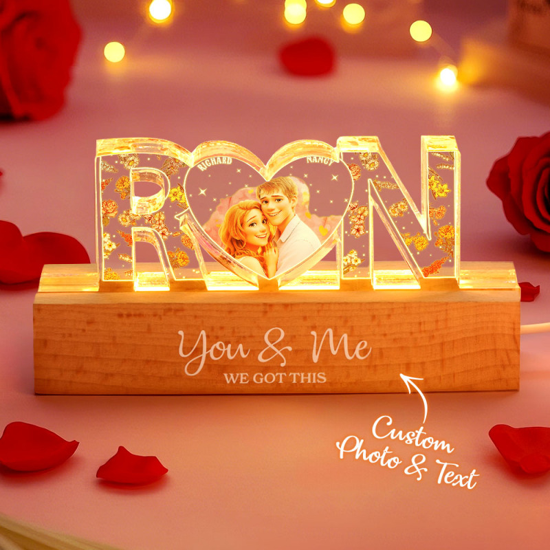 Personalized LED night lights show love, perfect for couples! Whether you're buying it for an anniversary, Valentine's Day or a special occasion, this custom nightlight is a beautiful and thoughtful gift. "You and Me" is printed on the base, and you can customize the text below.