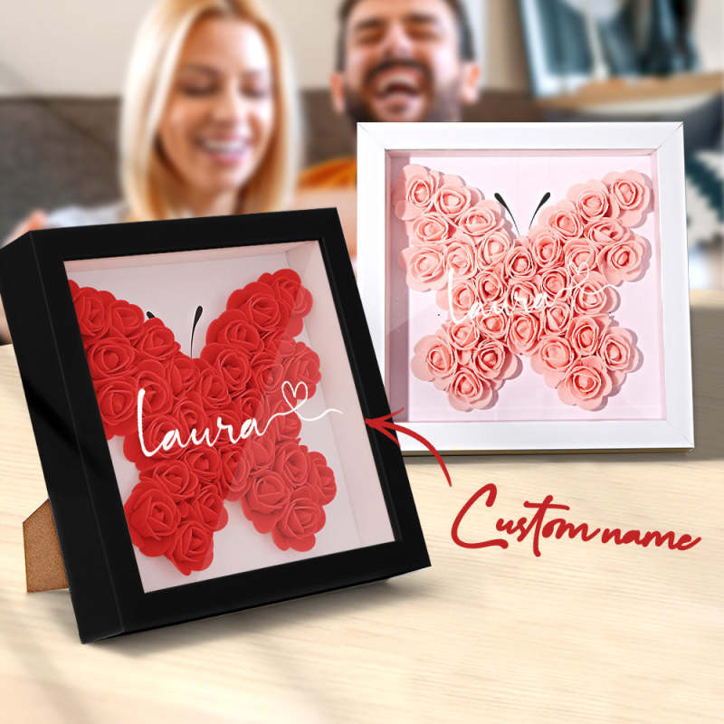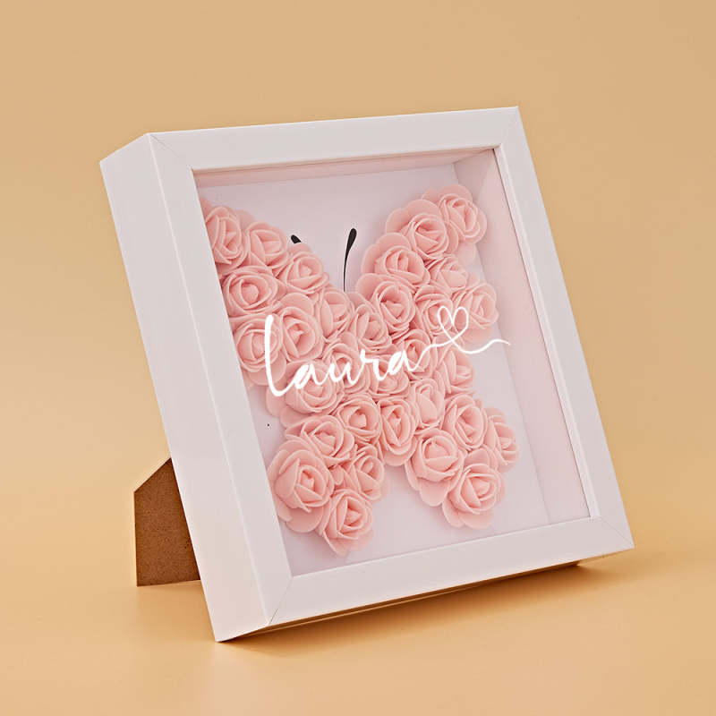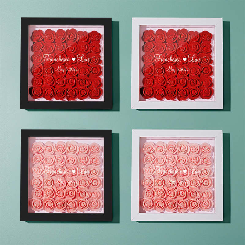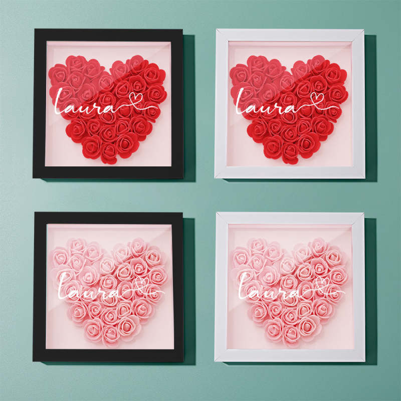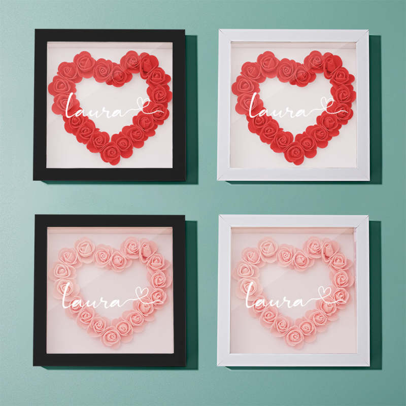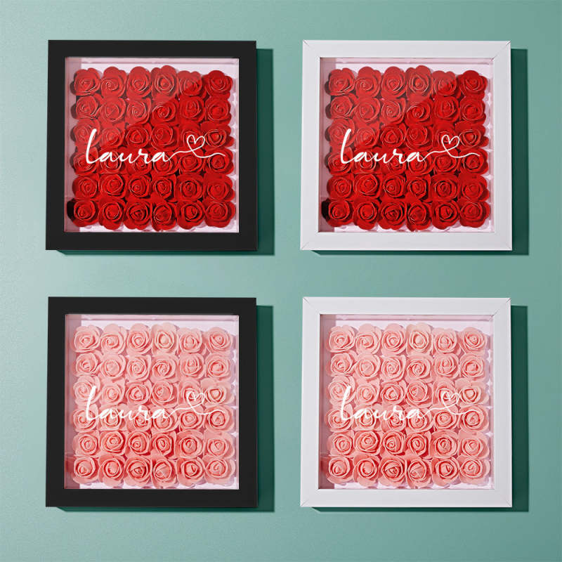 Custom Flower Shadow Box Personalized Name Flower Shadowbox Frame Gift