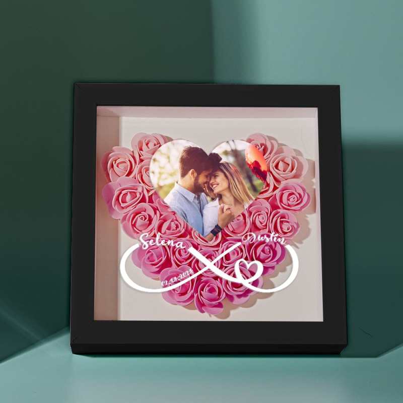High quality Vinyl is used for the name/message on the front of the frame. Heart Photo with Song Style ???? Heart Photo with Infinity Sign Style ♾️ Surprise your loved one with a beautiful personalized flower shadow box and capture a special memory.