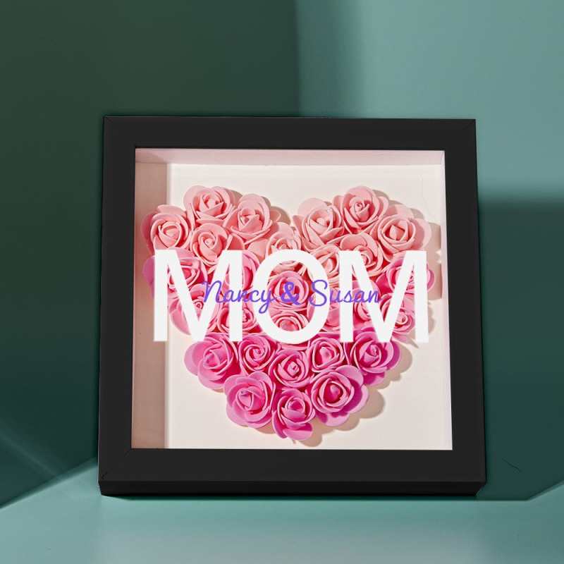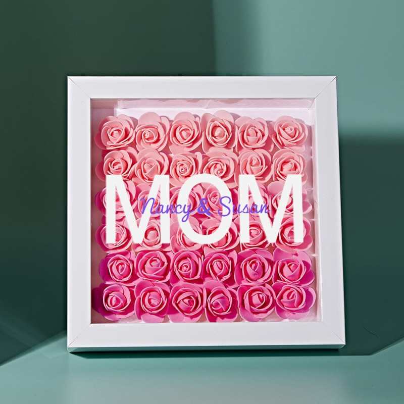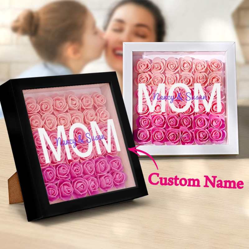Custom Name Flower Shadow Box Personalized Gradient Pink Flower Shadowbox Frame Gift for Mom