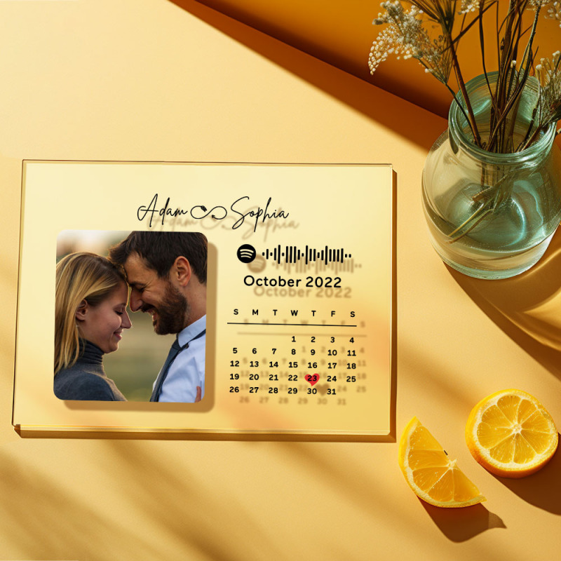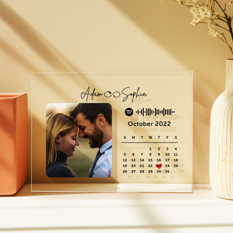 Custom Photo Anniversary Calendar Plaque Acrylic Spotify Song Decor Gift For Couples