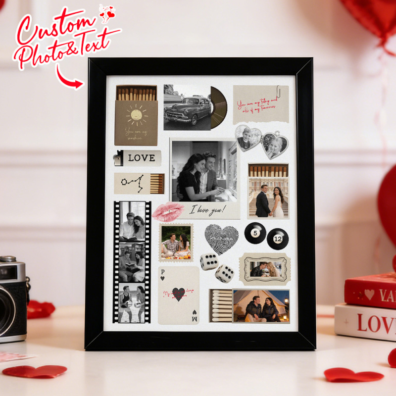 Custom Photo Matchbox Wooden Frame with Your Text Matchbook Poster Print Wall Art Anniversary Gift