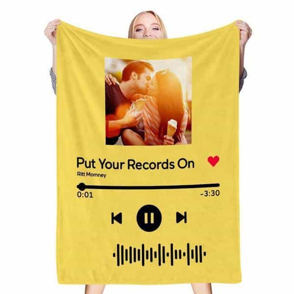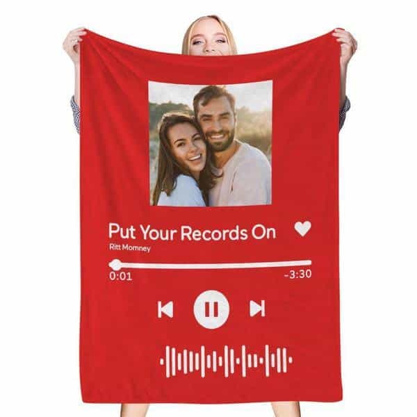 Custom Scannable Song Code Music Blanket Personalized Photo Fleece Blankets Red