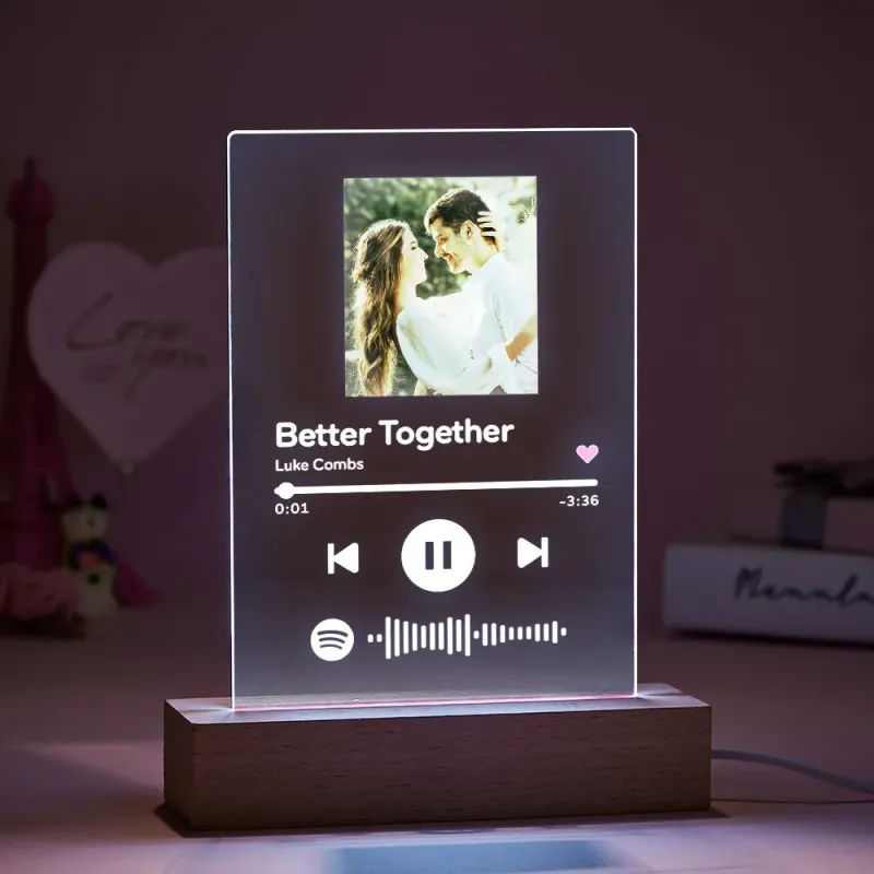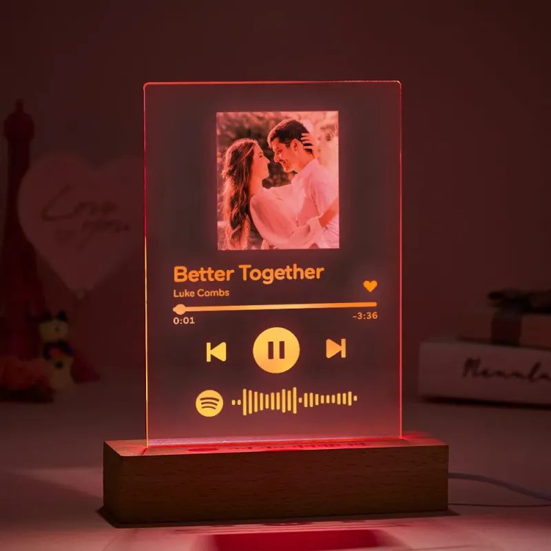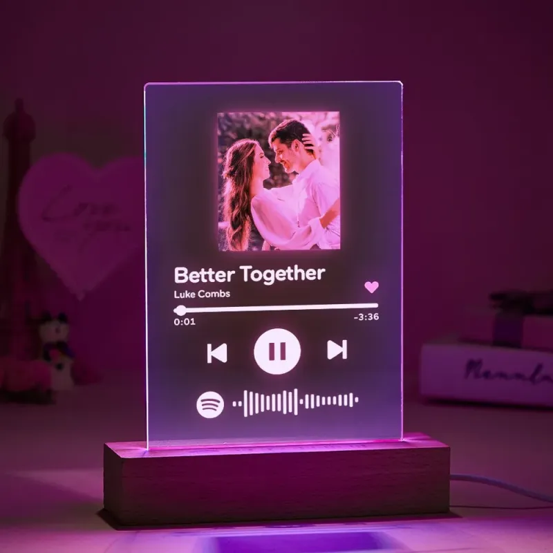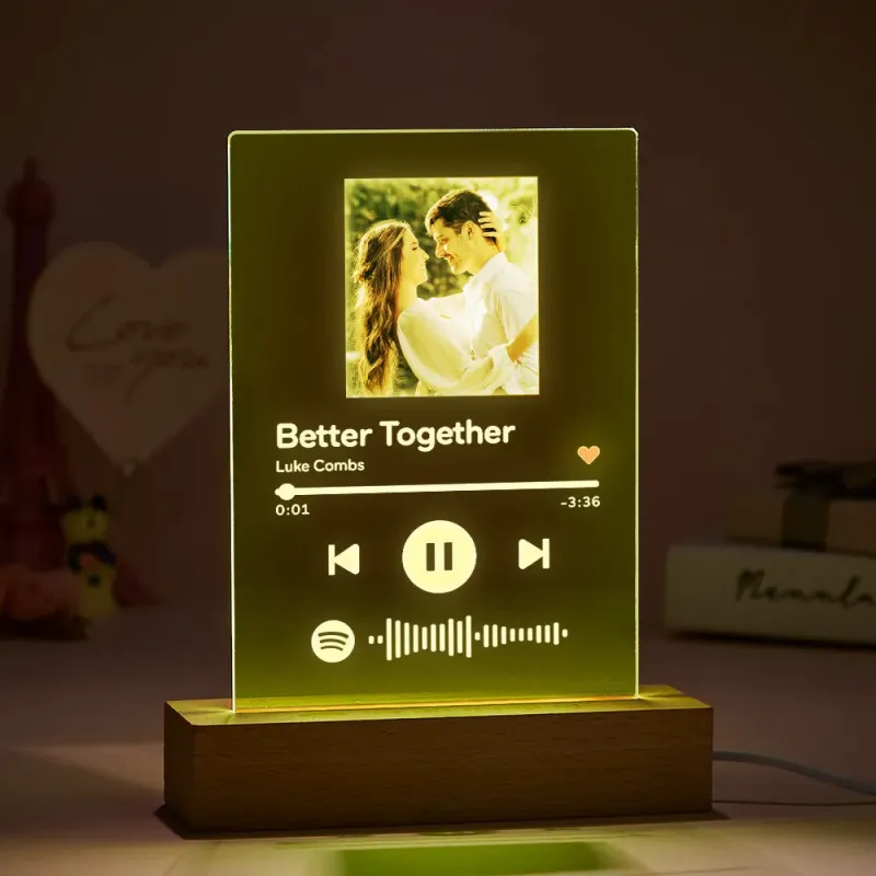 You can engrave the Spotify code of your favorite song on the acrylic music plaque so that you can scan the Spotify Code to listen to your favorite song anytime, anywhere.