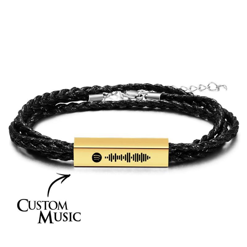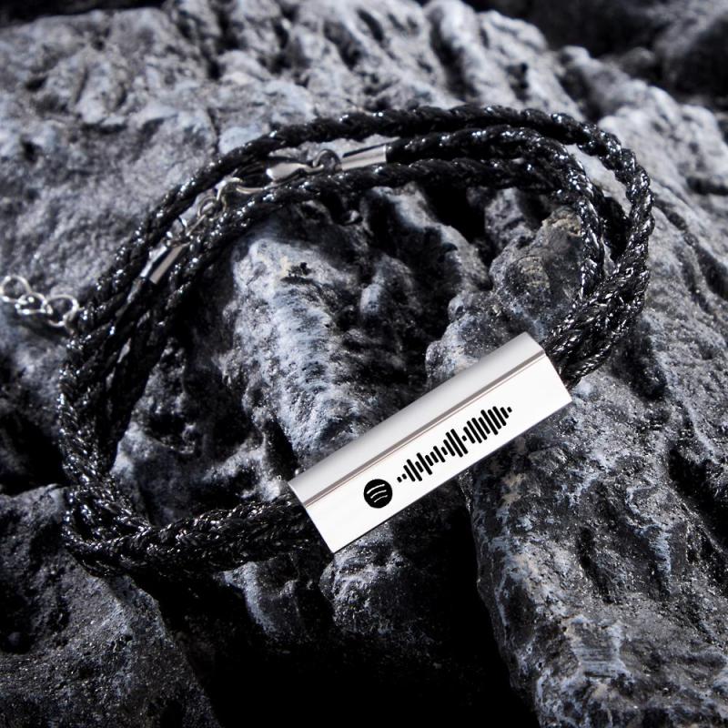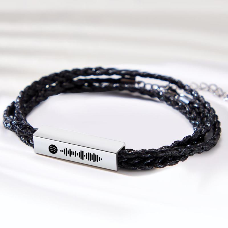 Custom Spotify Leather Bracelet Personalized Engraved Music Code Mens Bracelet