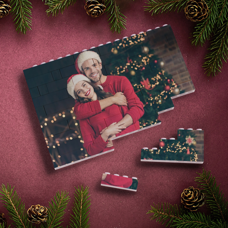 Building brick photo block Features: Unique interlocking brick display Vibrant UV Print A durable, wipeable finish