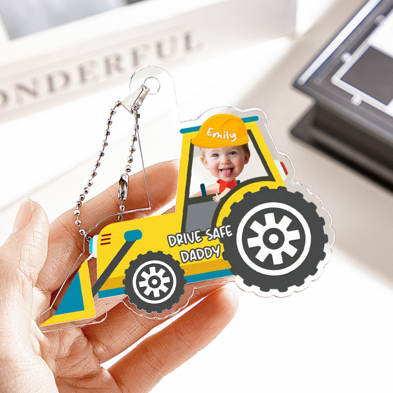 Keep Dad smiling on the road with our Personalized Photo Ornament. Featuring a custom photo and the funny message "Drive Safe Daddy," this acrylic hanger is a delightful and heartfelt accessory for his car. Ideal as a birthday gift or a special present for your husband, this customized ornament combines humor and love. It's a unique and thoughtful way to remind him to drive safely while cherishing family moments.