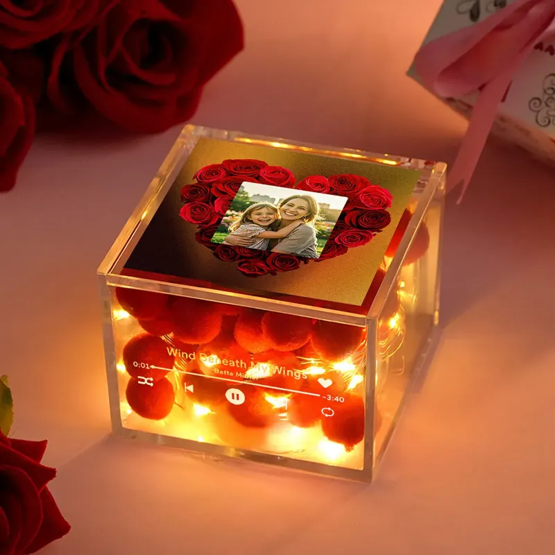 Mini Music Record Player Custom Photo with Light Music Acrylic Box Mother's Day Gift