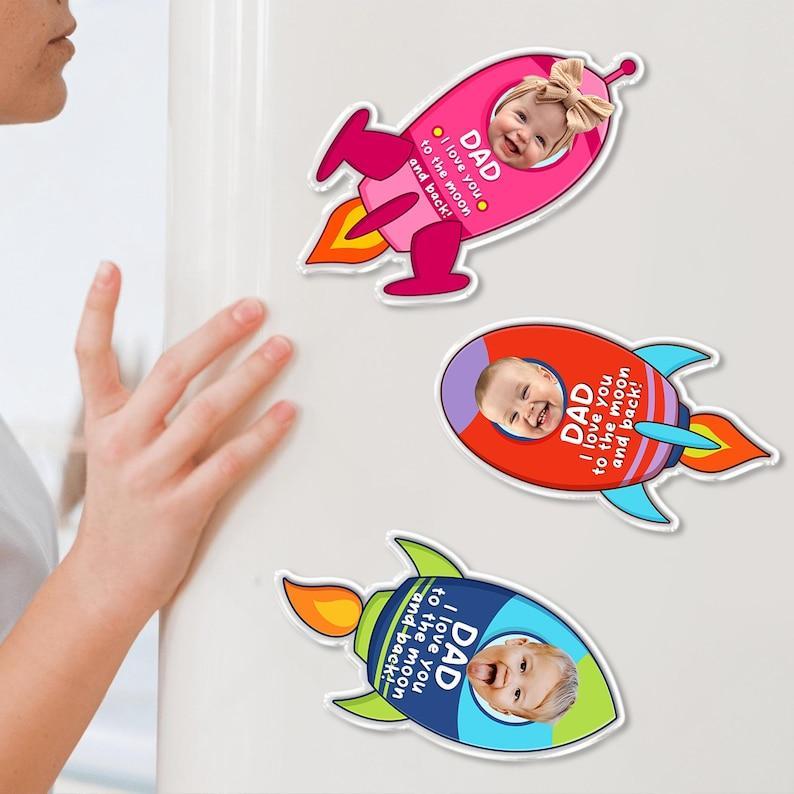 Personalized Father's Day Gift For Dad, Custom Kids Photo Space Rocket Magnet, Funny Baby Face Spaceship Magnet, New Dad Gift, Gift For Papa