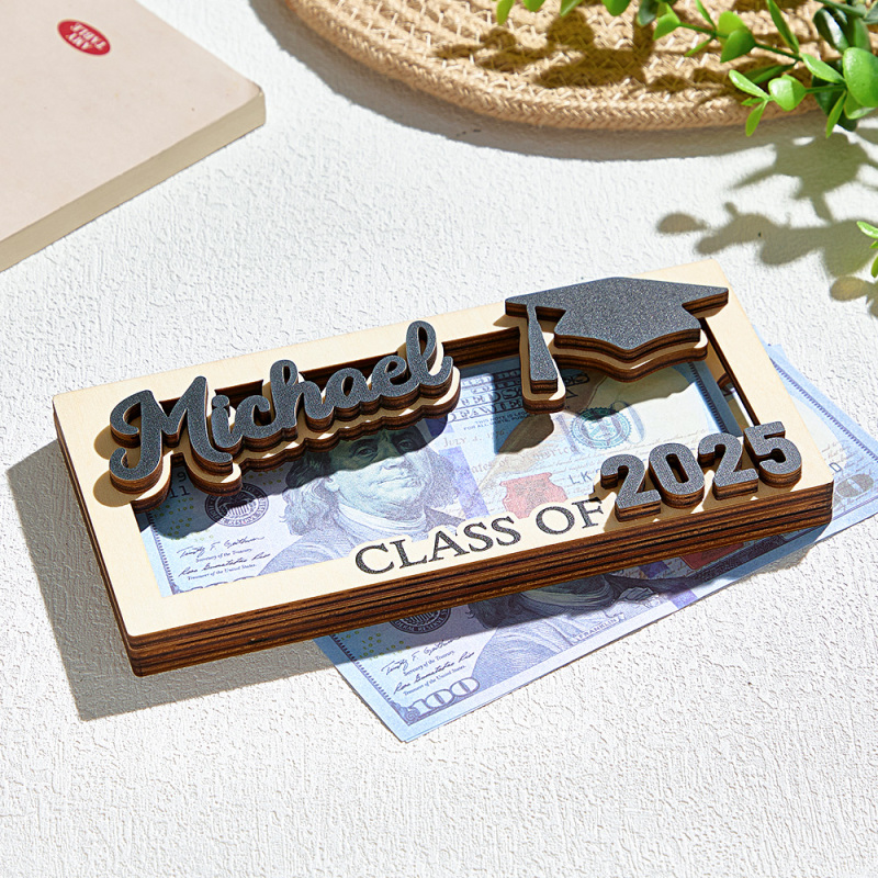 Celebrate a graduate's milestone with a unique and functional graduation-themed money holder. It can be customized to display their name, graduation year, and cap color of choice. The holder has a specially designed slot for presenting cash gifts and can be personalized with an uplifting quote. This thoughtful gift is a multifaceted symbol of celebration and a lasting memento of achievement and support.