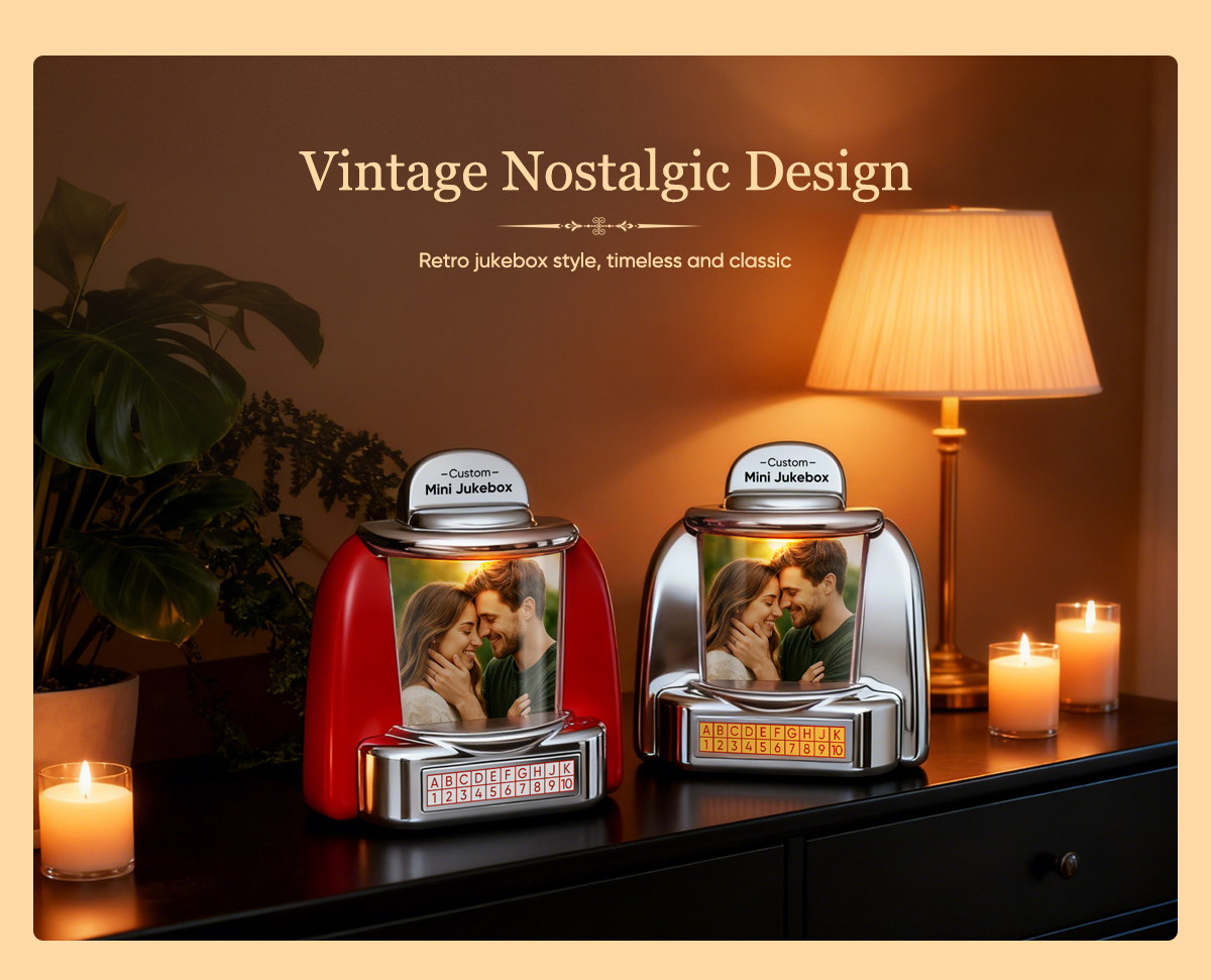 Custom Mini Jukebox Retro Speaker – Personalized Photo Music Mini Player with Radio | Vintage Tabletop Home Decor Nostalgic Gift