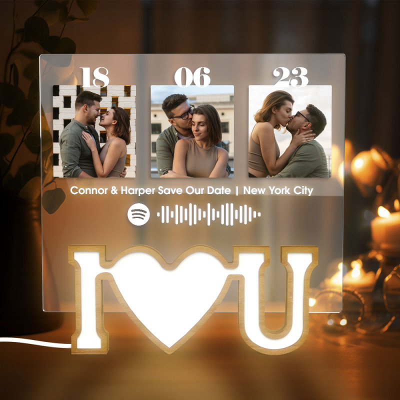 Celebrate love with our stunning personalized photo plaque. This custom night light is a beautiful Valentine's gift that will bring warmth to any space. Capture your special moments on this unique plaque and add a romantic touch to your surroundings. With the Spotify code feature, enjoy your favorite love songs and create unforgettable memories with our LOVE night light.