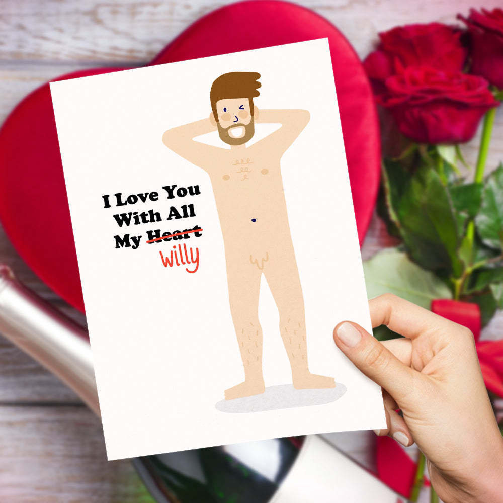 Funny Valentine's Day Greeting Card I Love You With All My Willy Rude Card