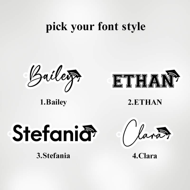 You can choose any between 4 font styles and 2 tassel colors! Check the image for the details :)