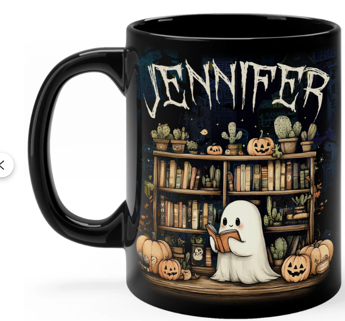 Personalized Halloween Ghost Reading Book Halloween Book Lover Coffee Cup Spooky Season Mug Halloween Library Custom Bookish Cup Gift