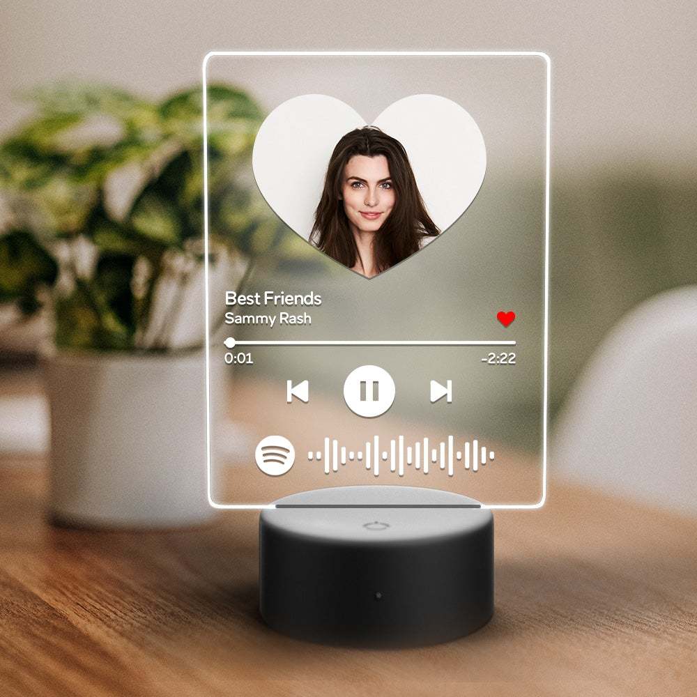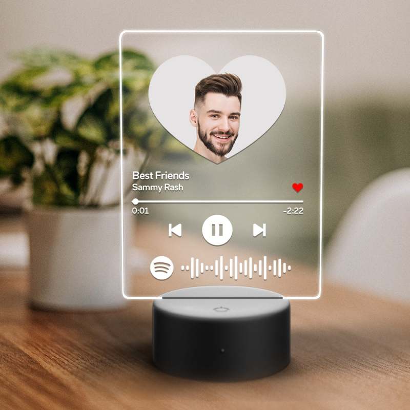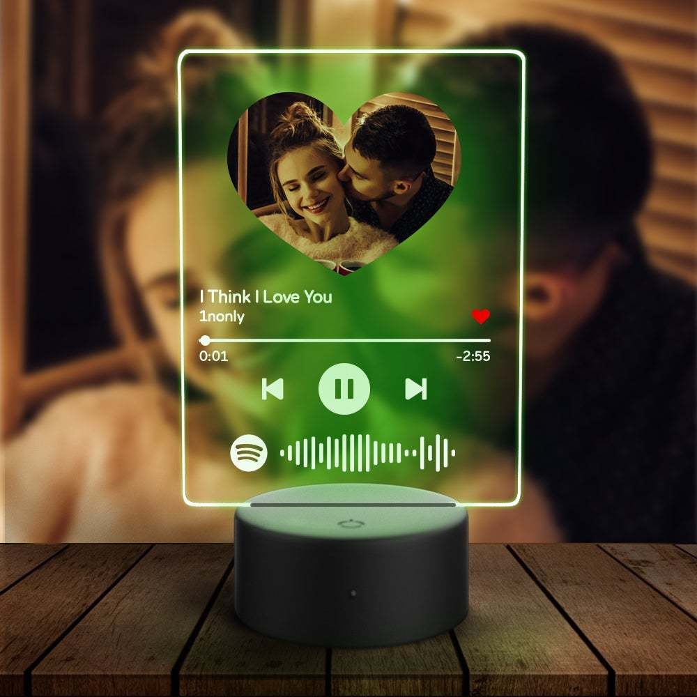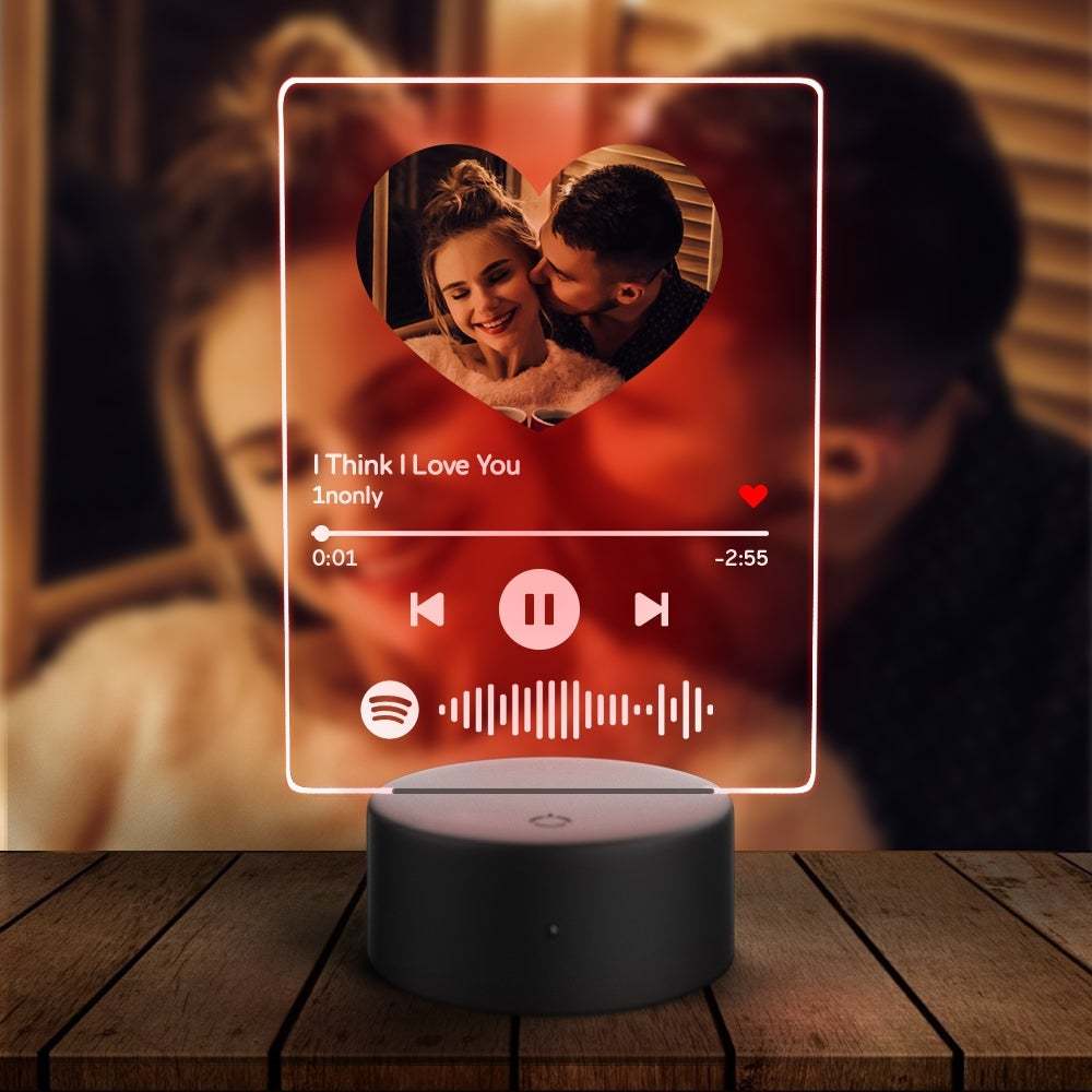 Scannable Heart Shaped Custom Photo Spotify Night Light 7 Colors For Couple, the best choice for your lover. The spotify song code that you loved will be printed on the board. And this item has seven colors light to decorate your room.