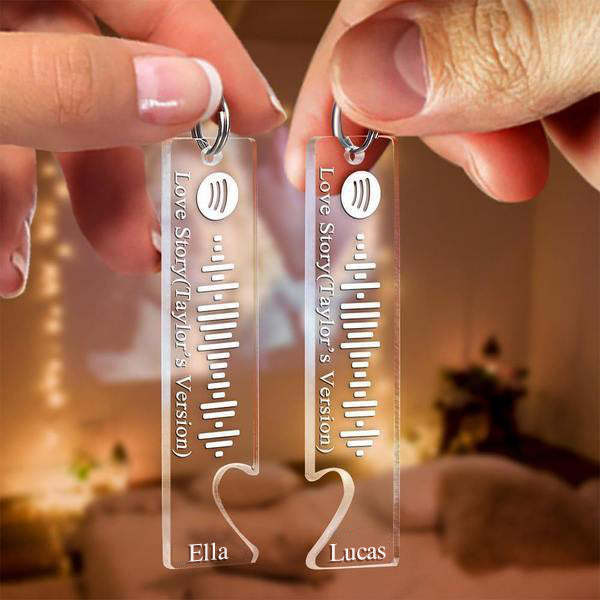 Scannable Spotify Code Keychain Engraved Custom Song Keychains Gifts for Valentine's Day